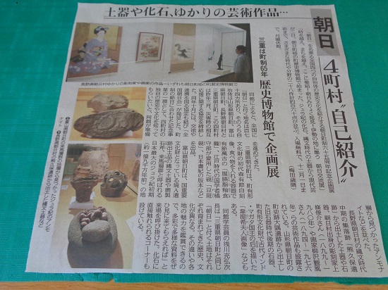 町制65周年の記念行事として、4町村の歴史文化を知っていただく企画展となったのです。呼びかけ文には「時を越え、まちを越え、ここに結集! 朝日みりょく発見! 伊勢後に集う・・としています。