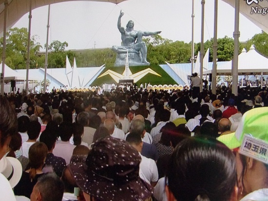 松井一実市長は平和宣言で、「日本政府には唯一の戦争被爆国として、核兵器禁止条約への署名・批准を求める被爆者の思いをしっかりと受けとめていただきたい。その上で、日本国憲法の平和主義を体現するためにも、核兵器のない世界の実現にさらに一歩踏み込んでリーダーシップを発揮していただきたい」とのべた。核兵器禁止条約への署名・批准を求める言及は初めてであるますが、最近の国際関係の状況を思い政府の姿勢に忸怩たる思いをのべたと理解します。