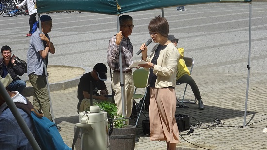 今日の集いでは7月参院選の統一候補が決定したことを市民連合三重の方から報告があり、三重民主連合、共産党、社会民主党の代表が統一候補の勝利のため力を注ぐ決意がのべられました。その後には市民の代表からの訴えなどが行われ、100人余りの参加者が市内の中心部をパレードして市民に訴えました。