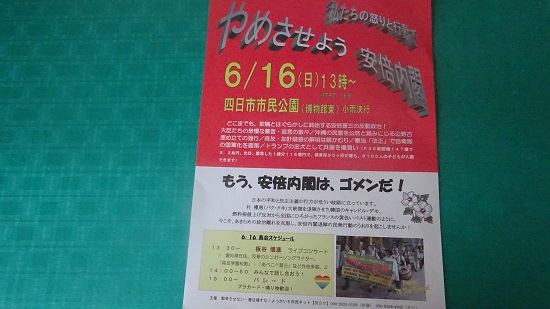 今日の午後、四日市市でおこなわれた 私たちの怒りと行動で「やめさせよう 安倍内閣」の集いとパレードの参加しました。