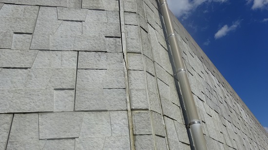 今日午前中、JR朝日駅の前を通っていましたら、西側の住宅地と道路には高低差が大きいため防護壁がつくられています。その防護壁から小さいのでありますが6個のブロックが下に落ちていました。
