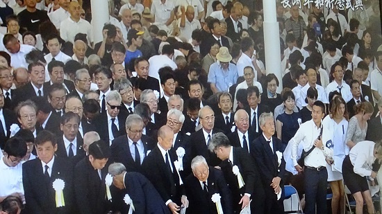 これに対して、安倍首相は広島の式典同様核兵器禁止条約には一言ものべなかった。ですから、唯一の戦争被爆国として「核兵器のない世界」の実現に向けて、粘り強く努力を重ねることはわが国の使命だ、とのべても、だれも本心であるとは受け取っていないはずである。