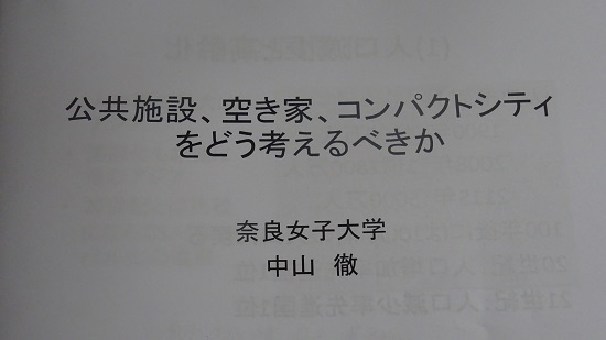 第一目は、全体講演でがあり、「公共施設、空き家、コンパクトシティをどう考えるべきか」と題して中山徹(奈良女子大大学院教授)さんから話しを聞きました。