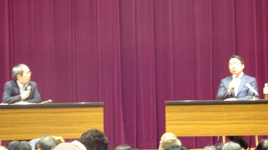 その後、中京大学の大内裕和さんとの対談があり、○国家が教育を不当に支配してはならない−中学校の前川講演会への文科省の問合せ問題−○貧困のために進学できない子どもたちに、給付型奨学金の充実を!がテーマでした。