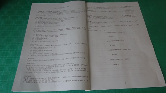 今日の午後、4町村の災害時相互応援協定調印式に議会議員も出席しました。これは朝日という名前がつく4町村が災害時に相互に支援するという内容の協定書で、その提案自治体である朝日町で行われたということです。