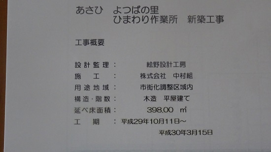 行政は事業参加者を公募して、応募してきた事業者が事業所の運営を委託するのにふさわしいかどうかを審査した結果、参加事業所はよつば会となり、今日の竣工に至ったのであります。