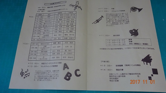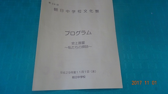 1日の午前中は中学校の文化祭を見せていただきました。ここ何年か継続してみていますが、確かな教育の成果が表現されています。今年は史上最響?私たちの輝跡?がテーマであるようで、輝きのある中学校生活を送っていくということであろうと推測しました。